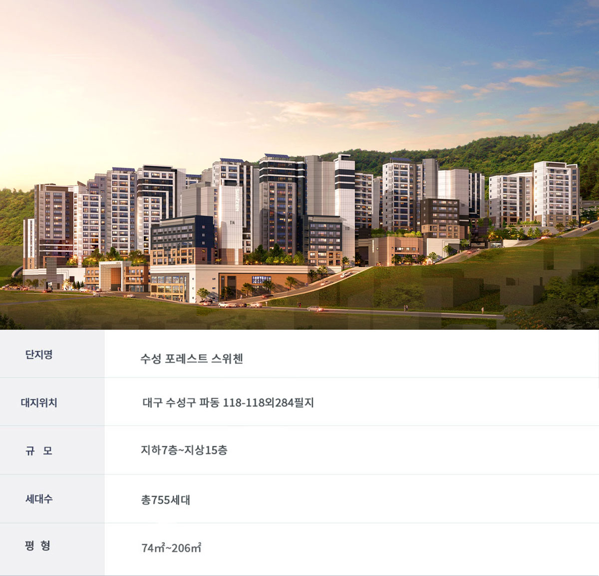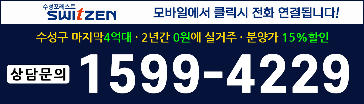 명품생활과 에코라이프! 수성 포레스트 스위첸 관심고객등록 ◈수성구 4억대 내집 마련기회◈ 유상옵션 무상제공 0원으로 2년간 실거주! 2년간 집값 보장·환매보장! 대구 6호선 파동역 예정 ◈분양가에서 15% 파격할인◈ 주택수 미포함 | 사업개요 | 입지환경 | 단지안내 | 커뮤니티 | 세대안내 | 프리미엄 관심고객등록 이름 (필수) 전화번호 (필수) 개인정보 수집 및 이용에 동의합니다. ※개인정보 수집및 이용에 관한안내 “수성 포레스트 스위첸”은 고객님 들에게 분양에 필요한 정보 이용을 위해 필요한 최소한의 범위로 개인정보를 수집합니다. 관심고객등록을 통하여 아래와 같은 개인정보를 수집하고 있습니다. 수집항목 : 이름, 휴대전화번호 수집방법 : 홈페이지 관심고객등록을 통한 개인정보 수집/이용, 개인정보 처리위탁의 내용에 대해 각각 「동의」버튼 또는「비동의」버튼을 클릭할 수 있는 절차를 마련하여, 각각의 「동의」버튼을 클릭하면 해당 사항을 동의한 것으로 간주합니다. 개인정보의 수집 및 이용목적 개인정보 항목별 구체적인 수집 및 이용목적은 다음과 같습니다. 이름, 전화번호 : 분양정보및 분양상담등 안내를 위해 제공받고 이용목적이 달성된 후에는 해당정보를 지체없이 파기합니다. 개인정보 수집 동의 거부권 : 모든 고객은 동의를 거부할 수 있으며, 동의를 거부할 경우 관심고객 등록이 불가합니다.
